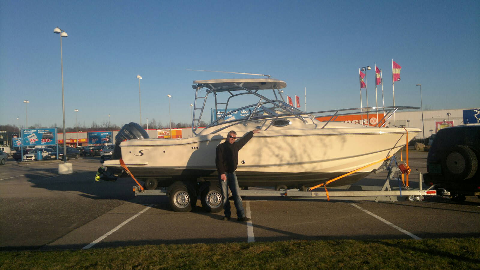 Far og sønn, Tom og Vidar Andersen fra Moss, har nettopp vært og hentet båten. Virket som de var storfornøyde og klare for å få båten på sjøen.